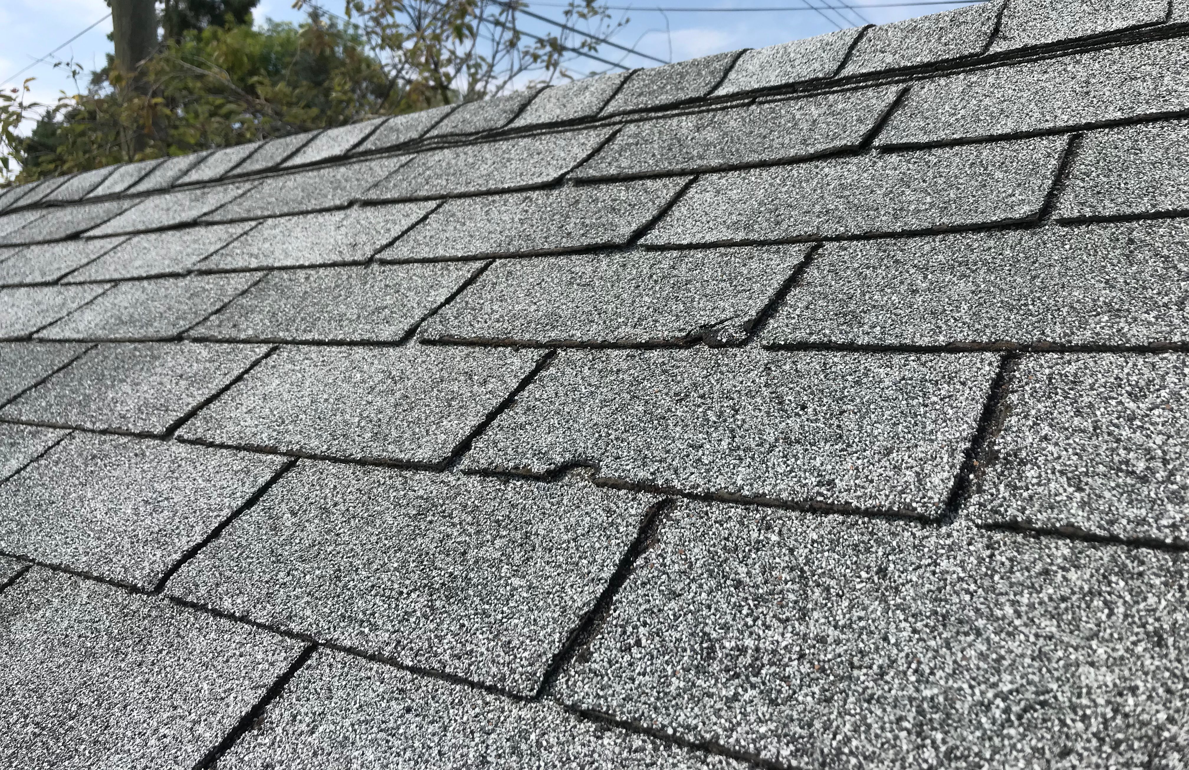The most vulnerable asphalt shingles are those that face incoming hailstones and those that are not firmly backed. These include the shingles along the edges of the eaves and rakes, as well as in the valleys and ridges where the shingles are bent.