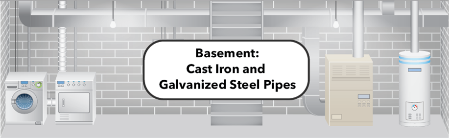 Cast iron or galvanized steel pipes are most commonly found in early 20th Century homes and are rarely used in new construction. They’re durable and heat resistant, but cast iron and galvanized steel are both prone to rust and corrosion. They’re particularly susceptible to cracking or splitting when exposed to freezing conditions.