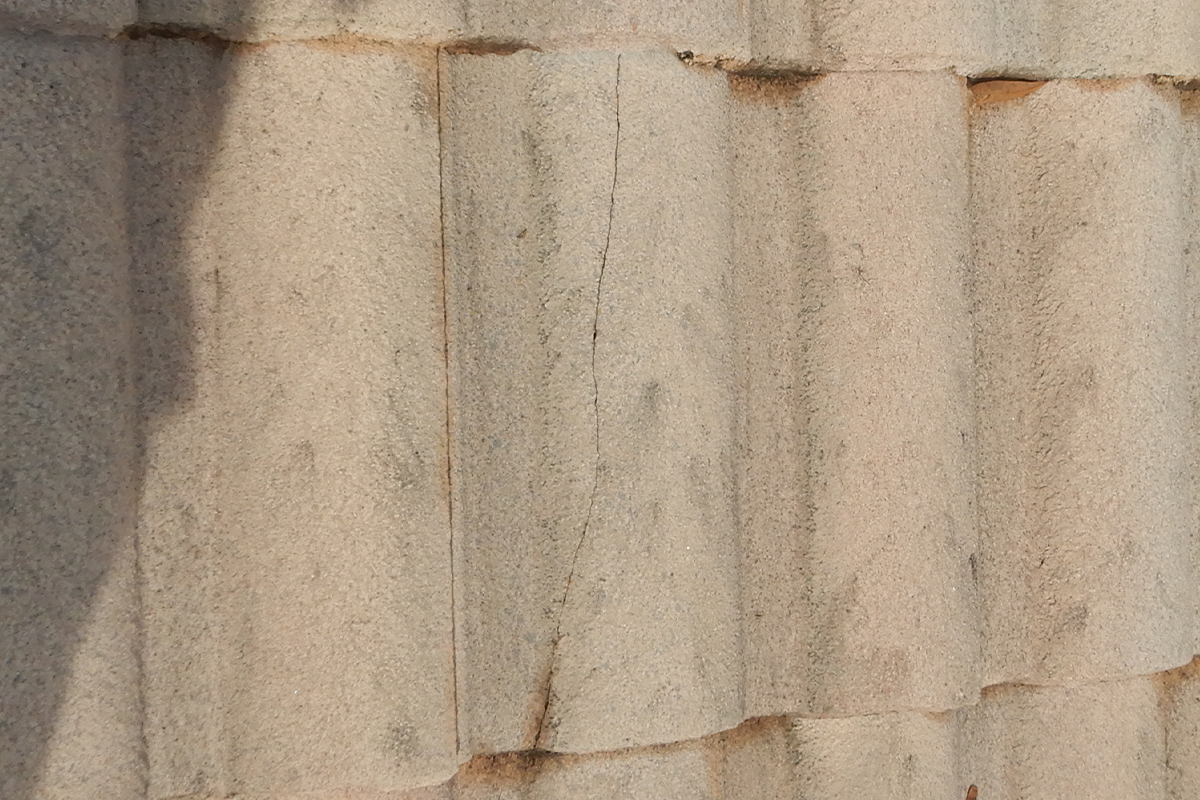 Longitudinal cracks in clay or concrete tiles are not caused by hail impacts. The Donan engineer who examined this roof determined that this crack was the result of human-caused damage.