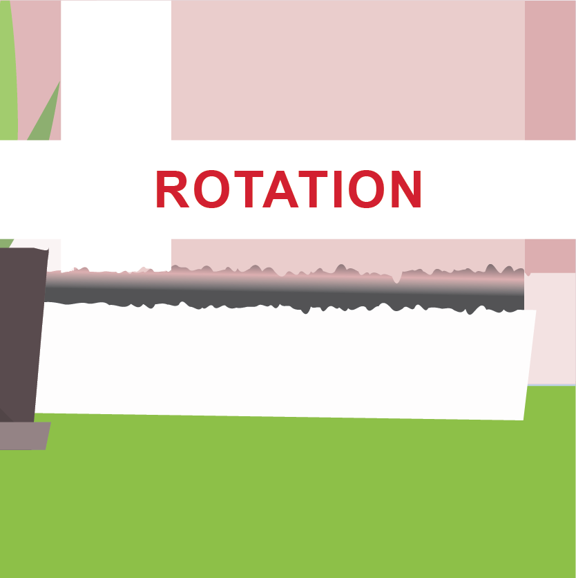 Differential settlement occurs when improper construction practices (such as poor backfill materials), earthquakes, and/or other mixed-composition soil lead to a variable rate of settlement. This may cause cracks in the foundation, interior or exterior wall coverings, masonry veneers, unlevel floors, leaning walls, and unlevel rooflines.